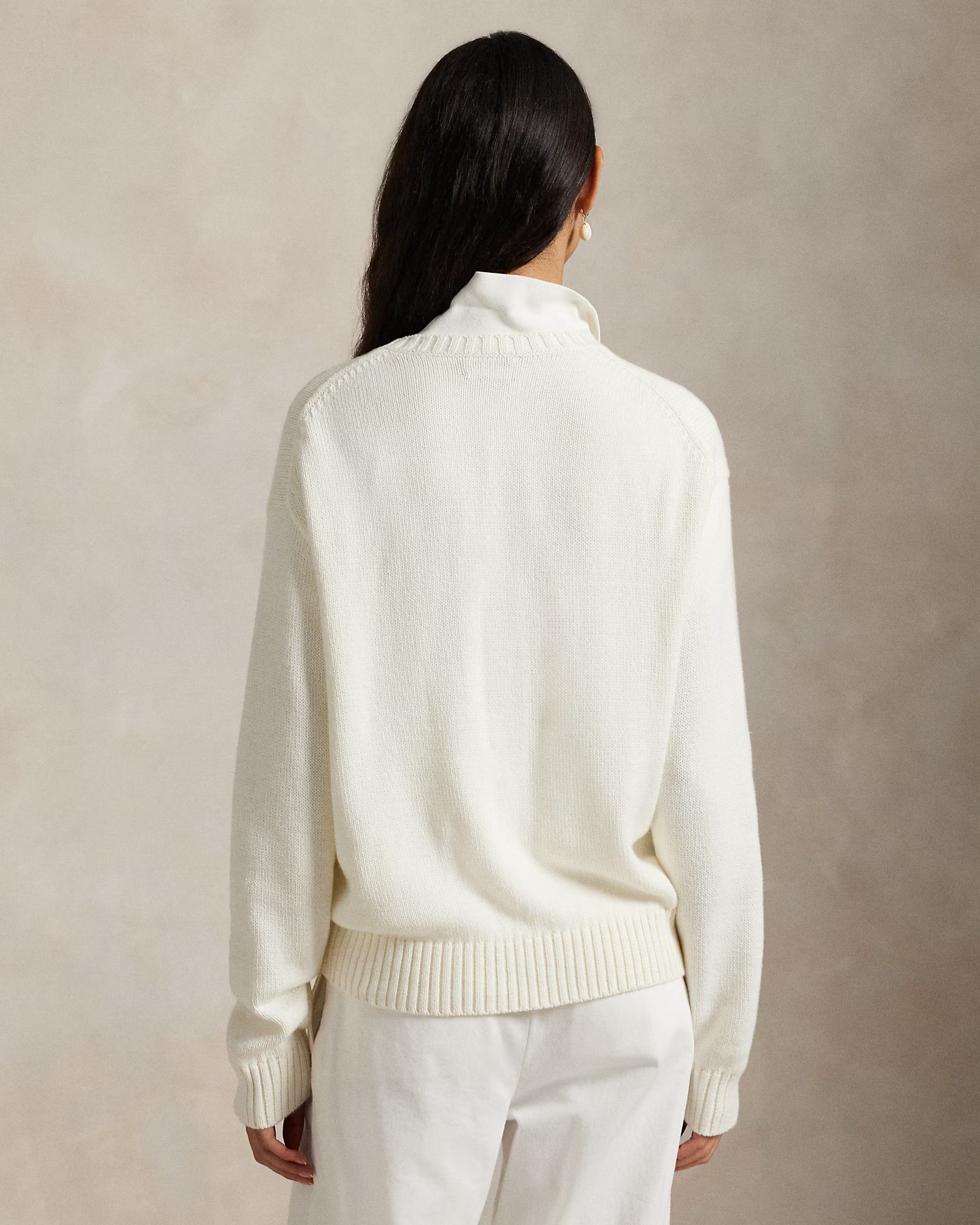 - Long sleeves with rib-knit cuffs. Dropped shoulders. Rib-knit hem.